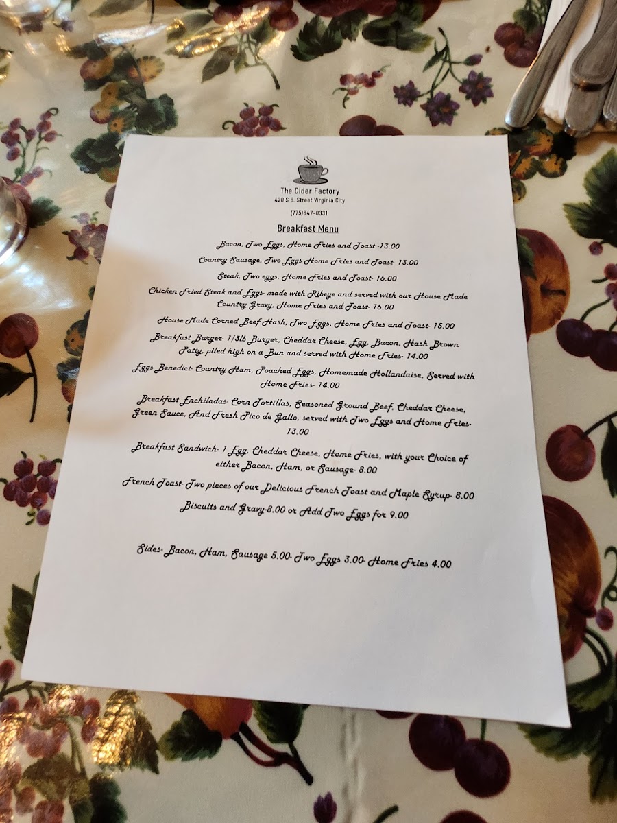 The Cider House at Canvas Cafe Menu